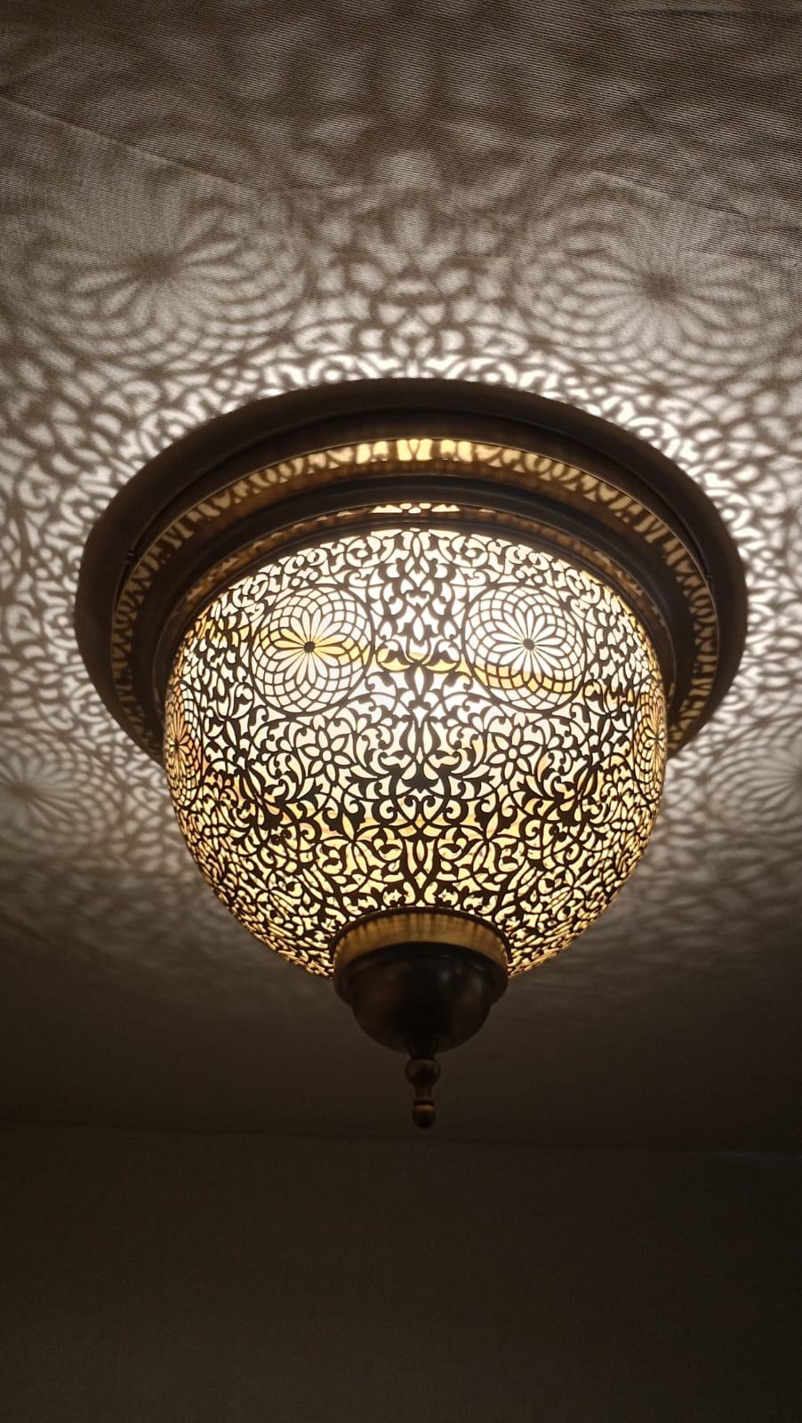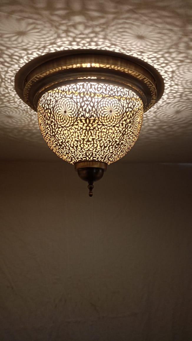 A copper ceiling lamp is a stylish lighting fixture featuring a copper construction, often with a polished or matte finish. Its warm, metallic appearance adds a sophisticated and modern touch to any room. The lamp can come in various designs, such as pendant, chandelier, or flush-mount styles, and is often used to complement contemporary or industrial interior decor. Copper ceiling lamps are known for their durability, as well as their ability to reflect light beautifully, creating a warm and inviting atmosphere.