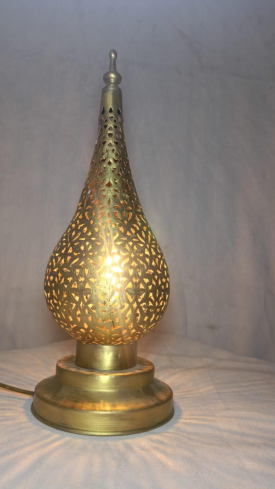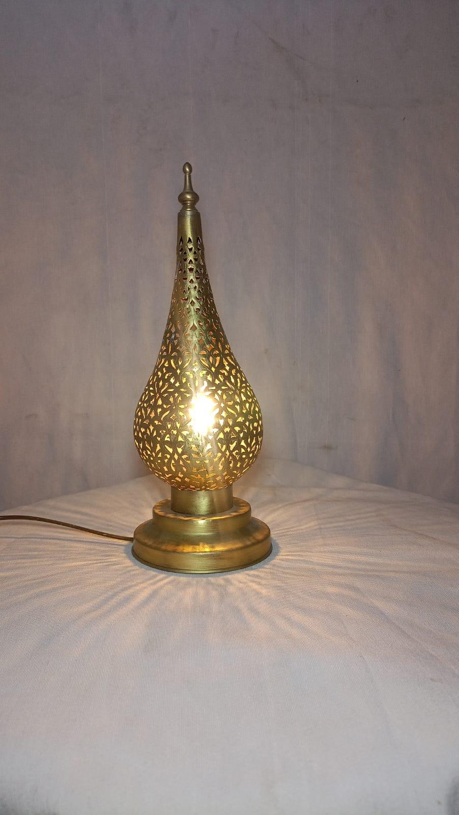 Elevate your decor with this beautifully handcrafted Moroccan copper lamp, designed for both style and functionality. Its posed design adds a unique touch, while the intricate patterns cast captivating light and shadow effects, creating a warm and inviting atmosphere.