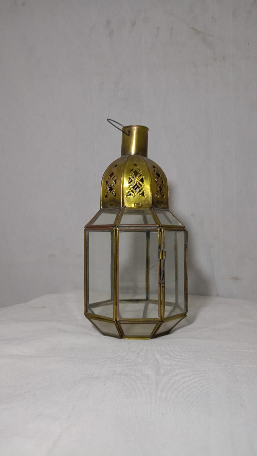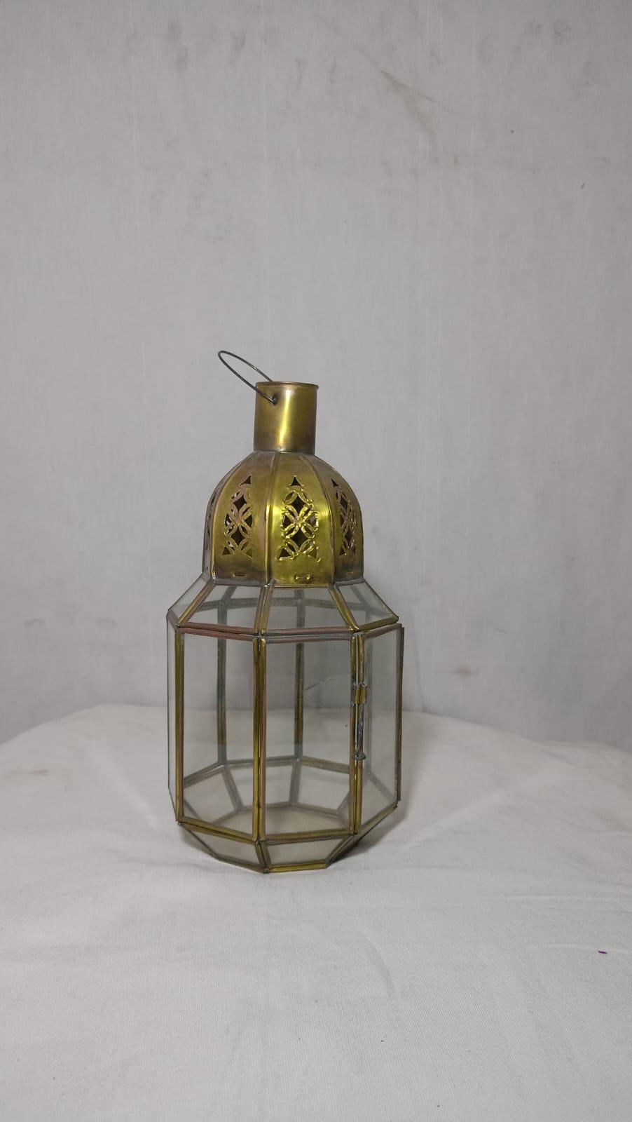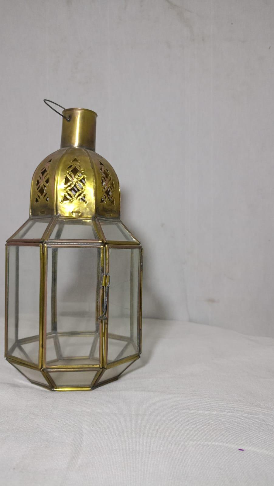 Add a touch of elegance to your decor with this exquisite Moroccan posed lamp, crafted from premium copper and adorned with vibrant glass panels. The combination of warm copper tones and colorful glass creates a dazzling interplay of light, adding character and charm to any space.