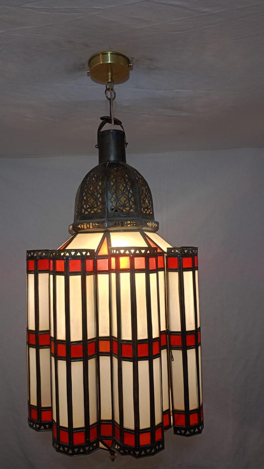 Elevate your space with the stunning radiance of this handcrafted Moroccan copper roof lamp. Designed to blend traditional craftsmanship with functional elegance, this lamp features intricate patterns that cast enchanting light and shadow effects, creating a warm and inviting ambiance.